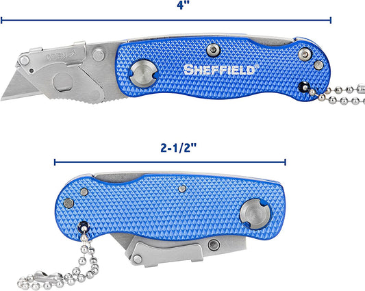 Sheffield 12116 Mini Ultimate Lock Back Utility Knife | Cut Boxes, Paper, Twine, etc. | Extra Quick-Change Blades Can Be Stored in Handle | Durable & Light Weight | Steel Blades, Aluminum Handle |Blue