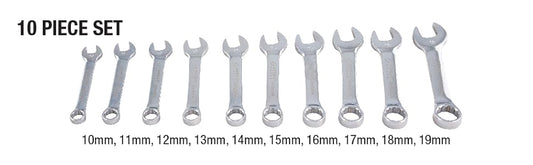 SUNEX 10 PC. FULLY POLISHED METRIC STUBBY COMBINATION WRENCH SET (9930M)