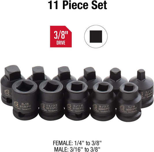 SUNEX TOOLS 11 PIECE 3/8" DRIVE DRAIN/PIPE PLUG IMPACT SOCKET SET (3841)